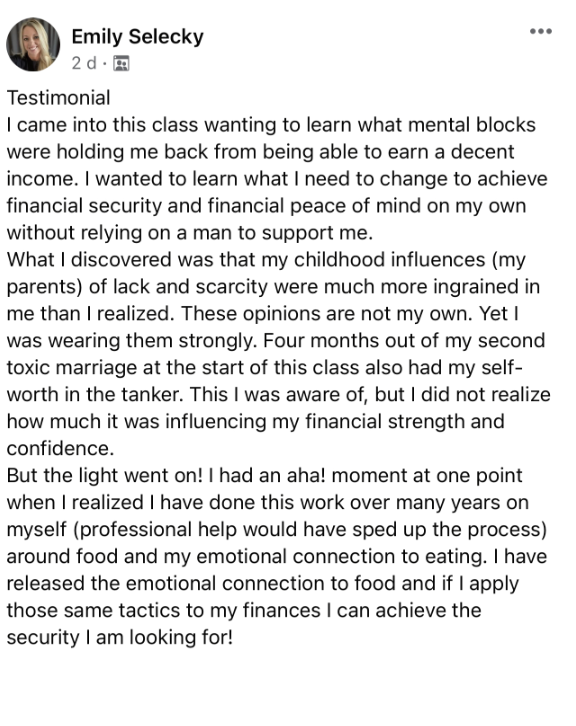 Release the money BS you've been carrying around so you are empowered to take daily aligned actions that give you the results you are looking for, aka more money!