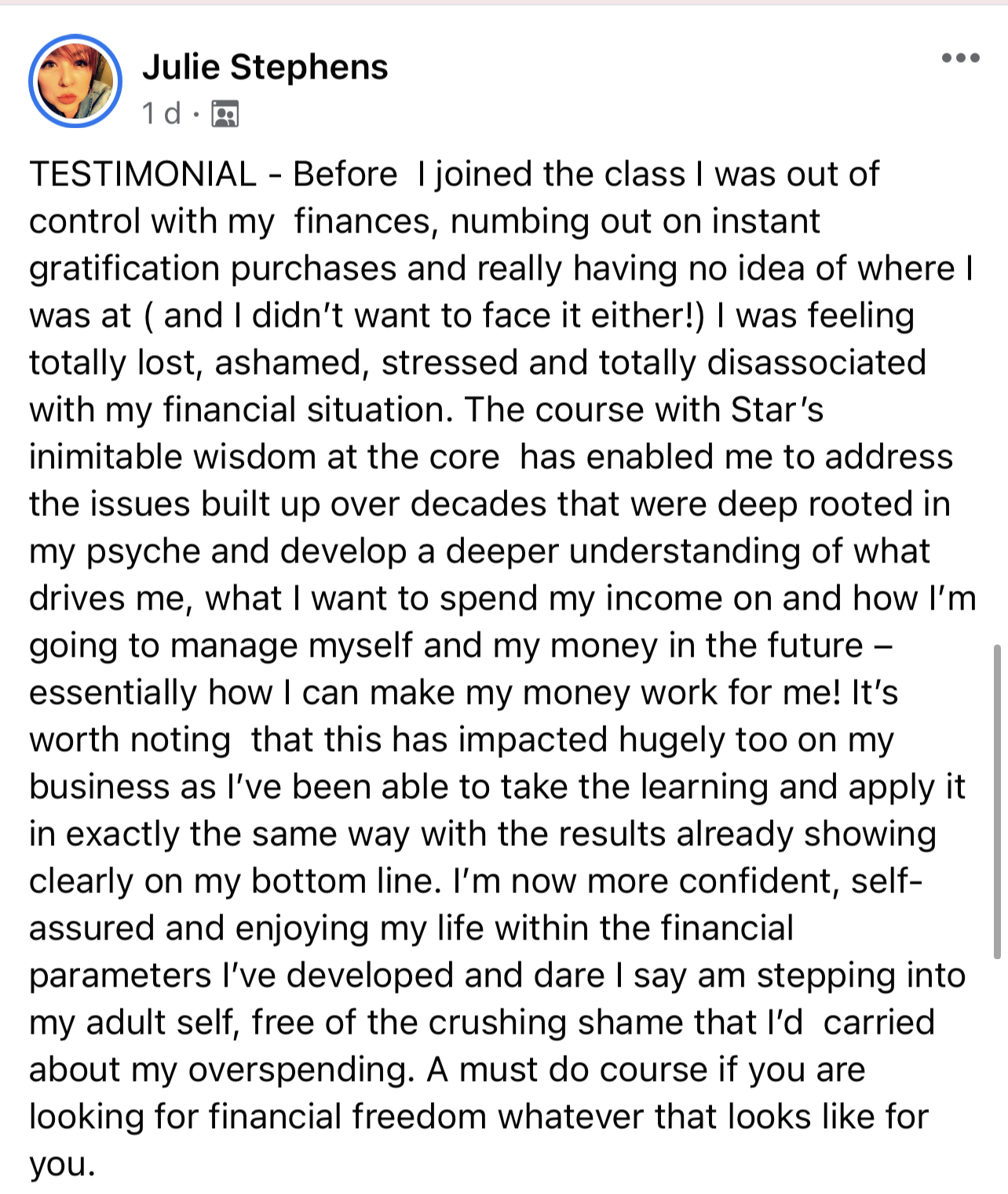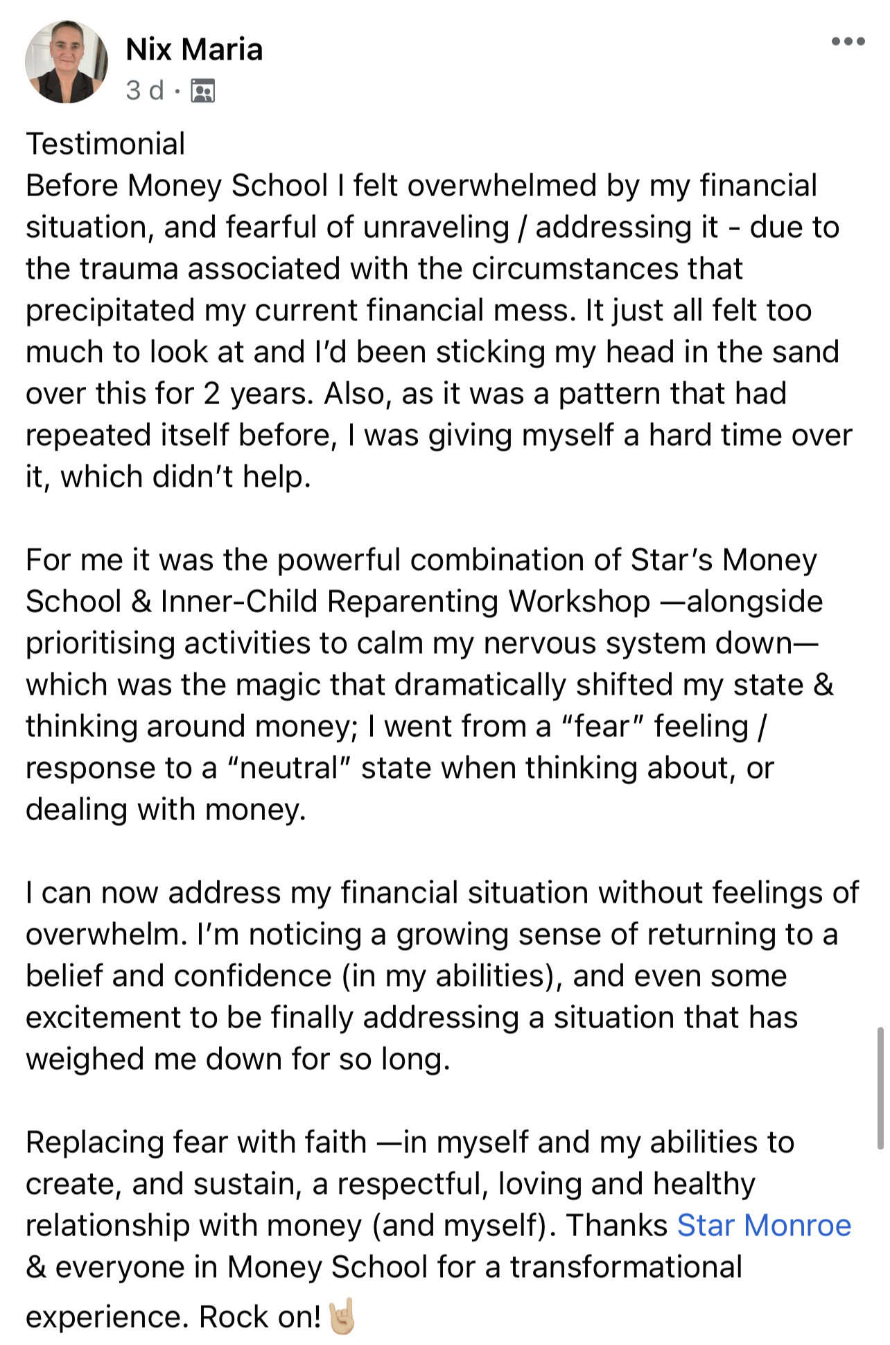 Money is one of the most powerful tools you have access to today. You just haven't been taught how to think about it in a way that works for you or how to use it in a way that is aligned with who you really are (which in turn magnetises more money into your life)