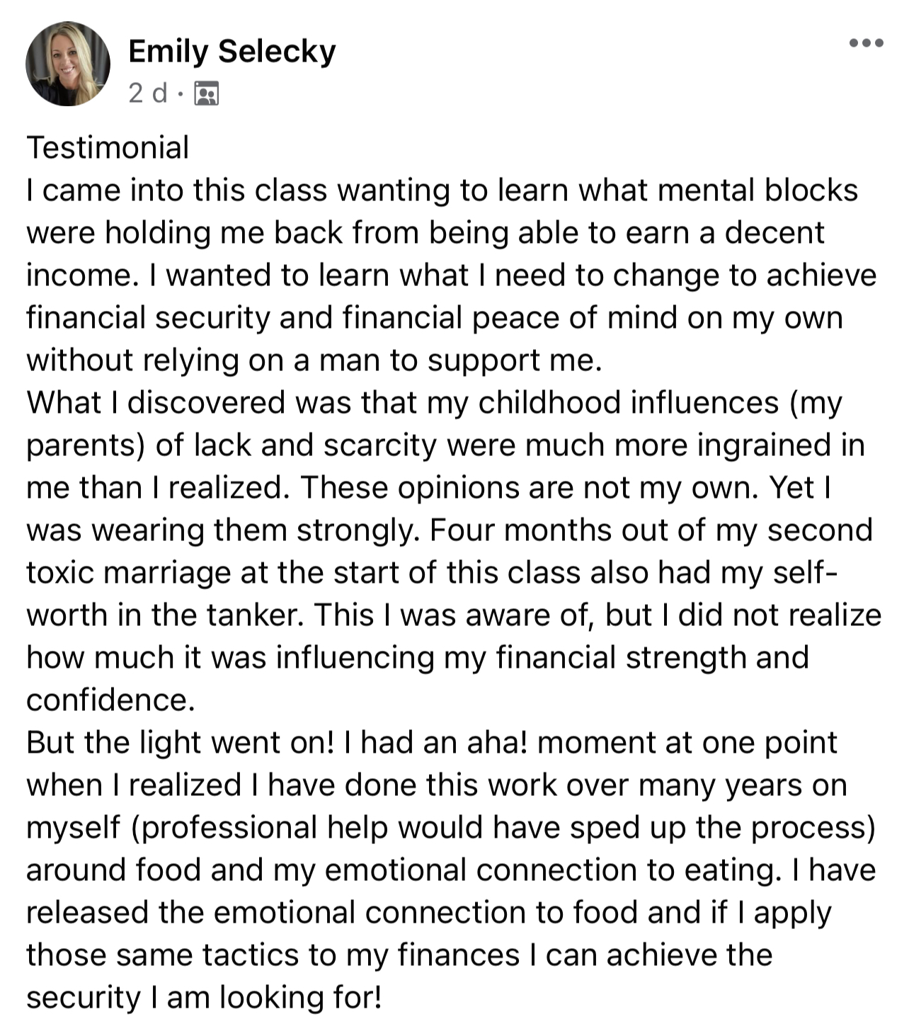 Release the money BS you've been carrying around so you are empowered to take daily aligned actions that give you the results you are looking for, aka more money!